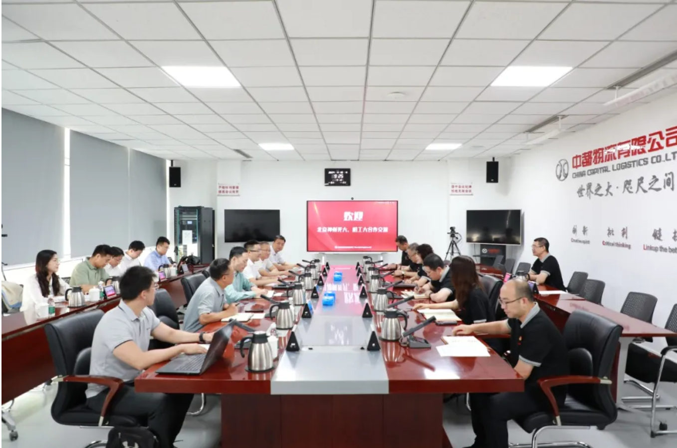 8月15日,中都物流、哈尔滨工业大学、北京神州光大技术创新合作交流会议在中都物流北京本部召开。哈尔滨工业大学交通学院党委书记王东升,经济与管理学院副院长赵泽斌,北京神州光大科技有限公司总裁高峰,中都物流有限公司党委书记、董事长张雪梅,党委副书记、总经理于冬等出席会议。